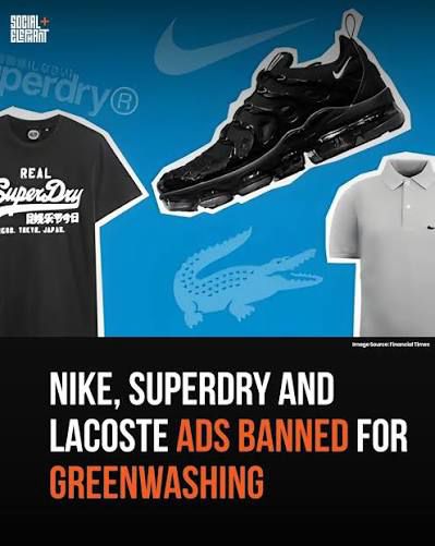 On Wednesday 3 December 2025, Nike, Lacoste and Superdry have exaggerated the environmental benefits of their clothes, according to the U.K.’s advertising watchdog, the Advertising Standards Authority (ASA) which has banned a selection of ads produced by Nike, Lacoste and Superdry after finding they made misleading sustainability claims. These rulings send a clear message that advertisers must be able to back up their green claims with solid evidence, so people get fair, accurate information when they’re choosing what to buy,” said Justine Grimley, an operations manager at the ASA. (https://www.ft.com/content/420775aa-dbce-42a5-958b-4df2fc7036fc)